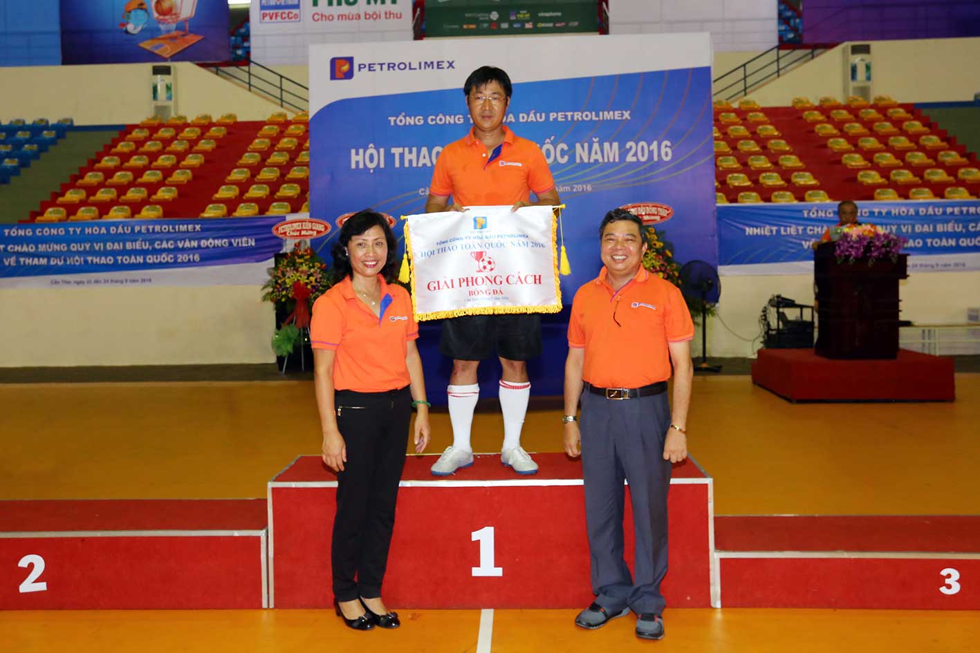 Ông Nguyễn Văn Đức - UV HĐQT, TGĐ TCT PLC và Bà Trần Thị Minh Hà - Chủ tịch CĐ TCT PLC trao giải Nhì môn bóng đá nam cho Đội bóng đá PLC Sài Gòn 1,…